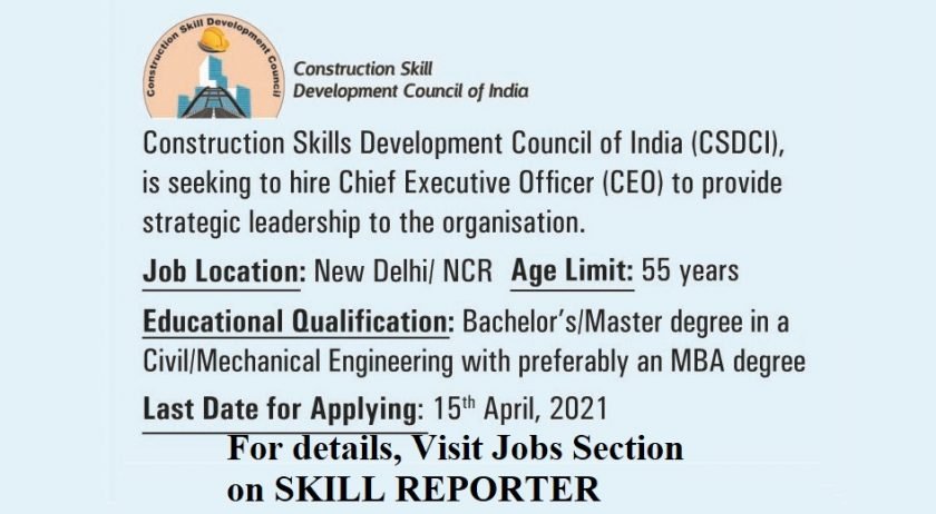 Required CEO for Construction Skill Development Council of India (CSDCI) This listing has expired. Let's spread the information further and build an informed community! Share this article with your network... Share on Facebook (Opens in new window) Facebook Share on LinkedIn (Opens in new window) LinkedIn Share on X (Opens in new window) X Share on Pinterest (Opens in new window) Pinterest Share on WhatsApp (Opens in new window) WhatsApp Email a link to a friend (Opens in new window) Email More Share on Telegram (Opens in new window) Telegram Also Read