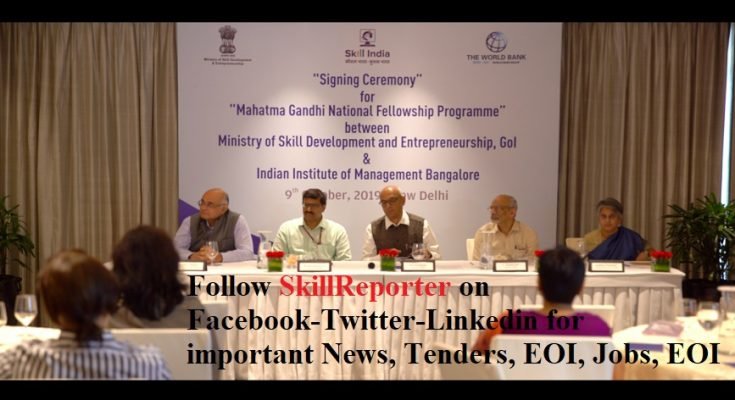 New Delhi : To boost skill development at the district level, the Ministry of Skill Development and Entrepreneurship (MSDE) today signed a contract with the Indian Institute of Management (IIM) Bangalore for introducing a two-year fellowship programme Mahatma Gandhi National Fellowship (MGNF) programme.