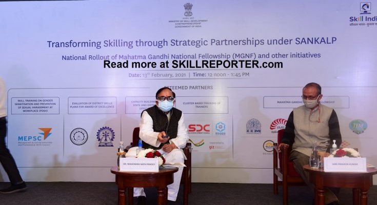 नई दिल्ली : केन्द्रीय कौशल विकास और उद्यमिता मंत्री डॉ. महेंद्रनाथ पांडे ने आज ‘ट्रांसफ़ॉर्मिंग स्किलिंग थ्रू स्ट्रेटेजिक पार्टनरशिप अंडर संकल्प’ और महात्मा गांधी नेशनल फैलोशिप (एमजीएनएफ) एवं अन्य पहलों के शुभारंभ से जुड़े एक समारोहकी अध्यक्षता की।