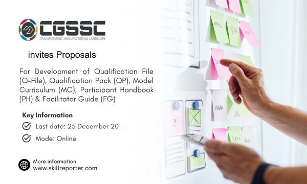 The Capital Goods & Strategic Skill Council (CGSSC) invites Expression of Interest (EOI) from reputed organizations/consultants/subject matter experts for the development of Qualification File (Q-File), Qualification Pack (QP), Model Curriculum (MC), Participant Handbook (PH), and Facilitator Guide (FG).