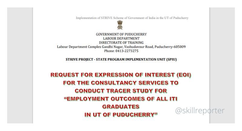 Director of Training–cum-Member Secretary, SPIU Society of Union Territory of Puducherry invites proposals (Two Bid System) from reputed and experienced Firms/Agencies/Organizations to conduct a tracer study for “Employment Outcomes of all ITI Graduates in Union Territory of Puducherry” under STRIVE Project.