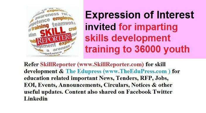 Refer SkillReporter (www.SkillReporter.com) for skill development and The Edupress (www.TheEduPress.com ) for education related important News, Tenders, RFP, Jobs, EOI, Events, Announcements, Circulars, Notices and other useful updates. Content also shared on Facebook Twitter Linkedin