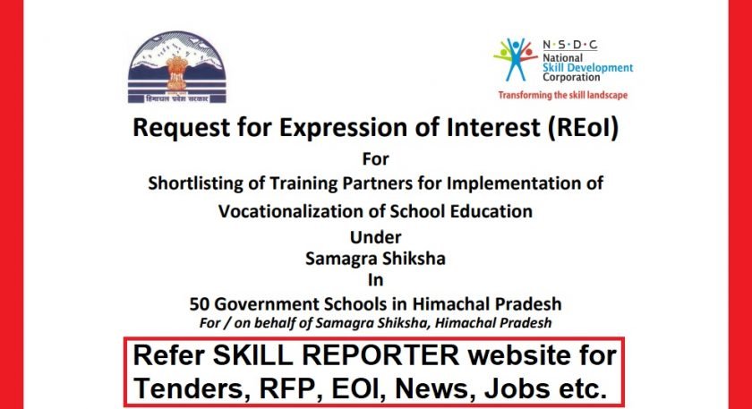 • The Government of Himachal Pradesh is willing to outsource the entire Training Delivery in 50 schools, approved by MHRD from 2020-21; to NSDC-approved Training Partners and has approached NSDC with a request to float REOI on their behalf and provide a panel of shortlisted NSDC-approved Training Partners for the roll out of the scheme from 2020-21 academic session.