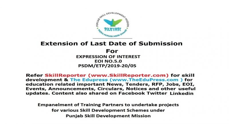 PSDM through PSDM/ETP/2019-20/05 invites the Expression of Interest ( EOI No.5.0 ) in categories A & B as listed below, who are interested and eligible for submission of proposal for empanelment to undertake projects under above mentioned skill training schemes in the State of Punjab. In case PSDM runs any other scheme, the Training Partners may be considered for the same.
