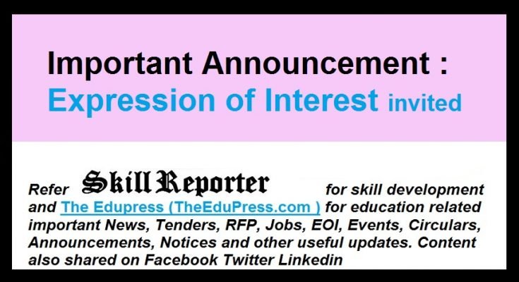Refer SkillReporter (www.SkillReporter.com) for skill development and The Edupress (www.TheEduPress.com ) for education related important News, Tenders, RFP, Jobs, EOI, Events, Announcements, Circulars, Notices and other useful updates. Content also shared on Facebook Twitter Linkedin