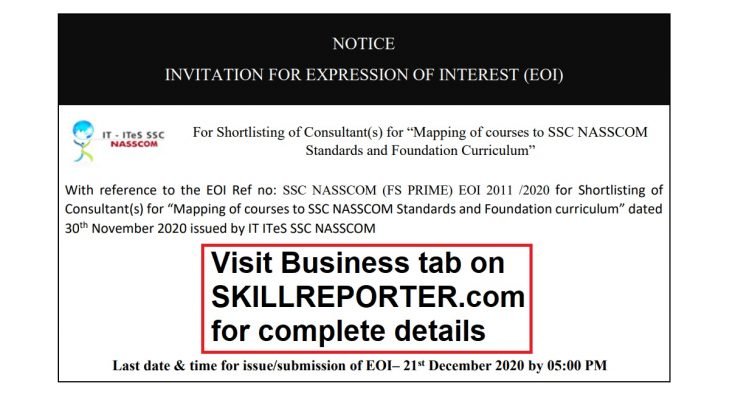 In order to fulfill its objectives SSC NASSCOM intends to SHORTLIST CONSULTANT(S) for “Mapping of courses to SSC NASSCOM Standards and Foundation Curriculum” and hence invites this EXPRESSION OF INTEREST (EOI)