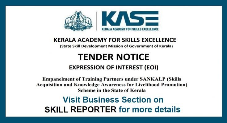 Managing Director, Kerala Academy for Skills Excellence (KASE), the State Skill Development Mission, Department of Labour & Skills, Government of Kerala through Tender Notice No: KASE – 20/2021/AMCP Dated: 16.02.2021 hereby invites Expression of Interest (Eol) from companies/firms who meet the prescribed eligibility criteria for including them in the panel of Empanelment of Training Partners under SANKALP (Skills Acquisition and Knowledge Awareness for Livelihood Promotion) Scheme in the State of Kerala.