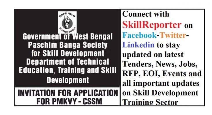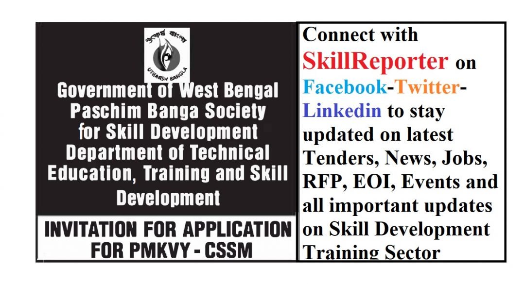 Paschim Banga Society for Skill Development (PBSSD) under Department of Technical Education, Training and Skill Development, Government of West Bengal intends to invite applications from the interested Training Centers who are on Skill India Portal with”DEEMED READY” status by 14.02.2020 for implementation of PMKVY-CSSM in the State of West Bengal.