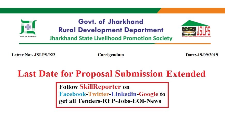 In continuation to the advertisement published by Jharkhand State Livelihood Promotion Society (JSLPS), Government of Jharkhand in the Newspapers and JSLPS website with letter no JSLPS/776 Dated 22/08/2019