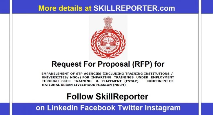 On behalf of Director, Urban Local Bodies-cum-Mission Director, State Urban Development Authority, Haryana, Panchkula invites tender RfP: SUDAH/EST&P/2021-22/01 for “Empanelment of Skill Training Providers Agencies (Including Training Institutions/Universities/ NGOs) for Imparting Skill Training under )” through e-tendering online portal.