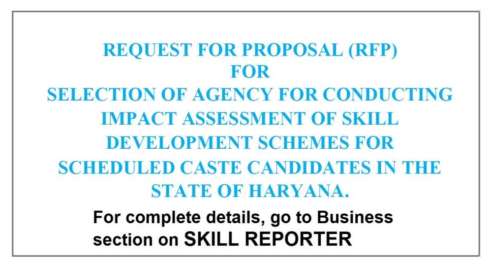 Haryana Skill Development Mission (HSDM) has provided skill development training to 8282 Scheduled Caste (SC) youths in last three years. HSDM is looking for support from expert agencies to conduct an Impact Assessment of these trainings. Against this background, HSDM through this RFP No. HSDM/SCIS/03/2021-22/434 invites RFP from reputed agencies with proven track record and having a good understanding for conducting such Impact Assessment of the trainings.