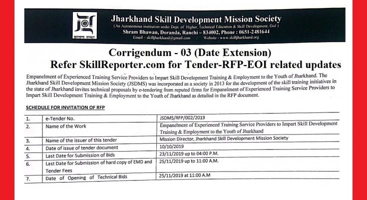 At present, various Departments of the Government of Jharkhand are engaged in skilling activities by procuring the services of training providers / agencies / NonGovernmental Organisations (NGOs) / academic institutions, etc. The objective of this RFP is also to empanel a diverse set of training providers (“Empanelled TSPs”) which