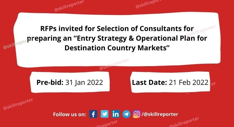 National Skill Development Corporation International (NSDCI), the client intends to select Consultants for preparing an “Entry Strategy & Operational Plan for Destination Country Markets”. The Consultants are invited to submit a Technical Proposal and a Financial Proposal against this RFP. The Proposal will be the basis for negotiating and ultimately signing the Contract with the selected Consultants.