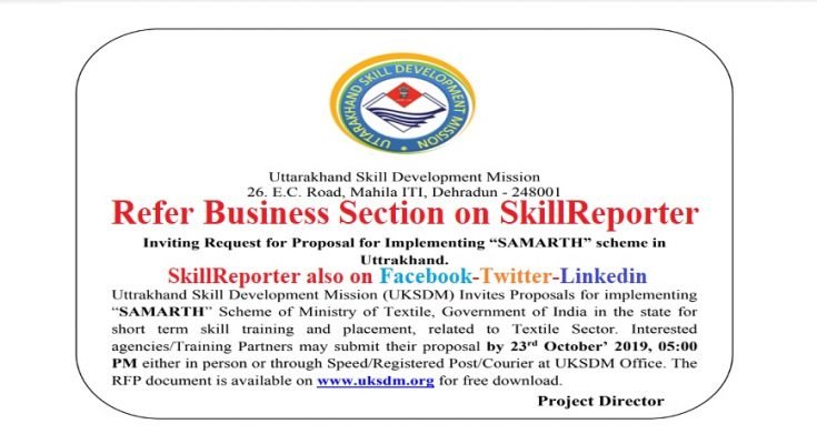 The pre-Proposal conference is scheduled on 11th October’2019, 11:00 am at Uttrakhand Skill Development Mission, Govt. Woman ITI, 26 EC Road, Dehradun-248001