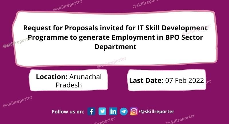 State Council for IT & e-Governance Department of Information Technology & Communication in Arunachal Pradesh intends to select eligible bidders through Request for Proposal (RFP) for IT Skill Development Programme to generate Employment in BPO Sector.