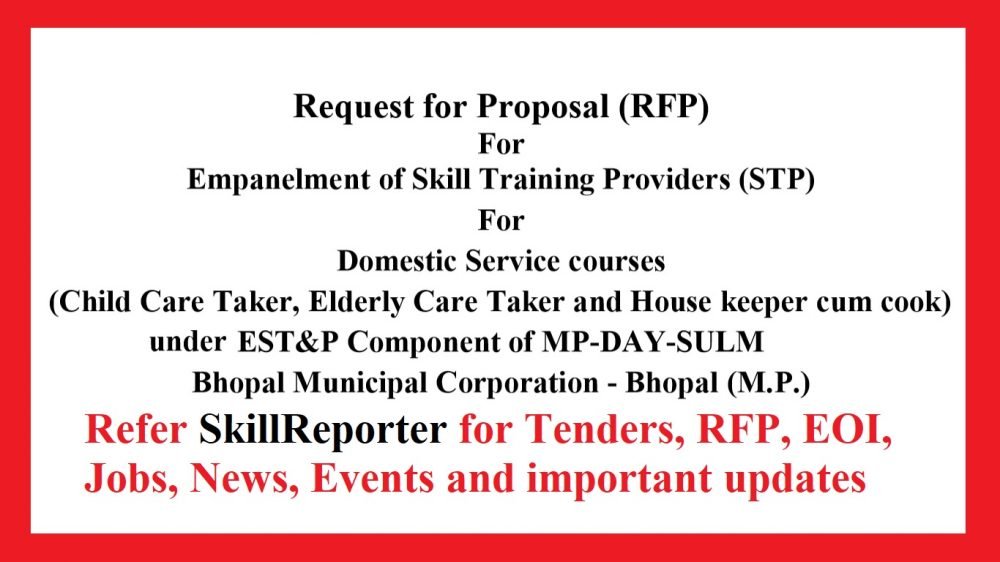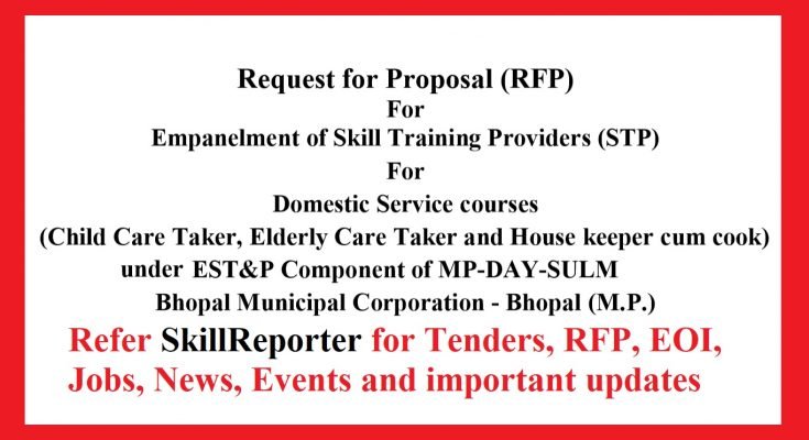 State Urban Livelihood Mission (SULM), Bhopal Municipal Corporation M.P. (Hereinafter ‘the Client’) now invites proposals from reputed NSDC partners, SSC partners/Govt. institution/Private training partners having training & placement experience in domestic sector course for providing training, certification & placement to the urban poor (BPL) in selected city under DAY-NULM.