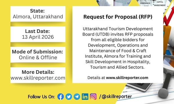 Uttarakhand Tourism Development Board (UTDB) invites RFP proposals from all eligible bidders for Development, Operations and Maintenance of Food & Craft Institute, Almora for Training and Skill Development in Hospitality, Tourism and Allied Sectors.