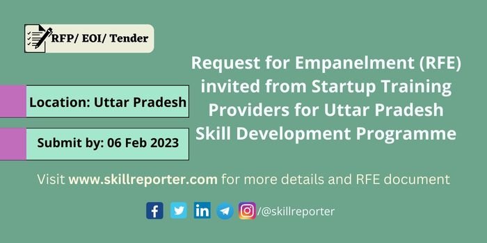 Uttar Pradesh Skill Development Mission is implementing the UP Skill Development Programme in mission mode with a target of training the youth of Uttar Pradesh in short-term vocational trades. This RFE is for empaneling Startups as Private Training providers for a period of contract which would initially be for One financial year excluding the financial year in which the contract is signed. The currency of the contract would be extendable for a period as mutually agreed upon by the UPSDM and the concerned Startup Training Provider on the basis of satisfactory performance of the latter. However, the non-satisfactory performance of any Startup Training Provider may result in immediate termination of the agreement.