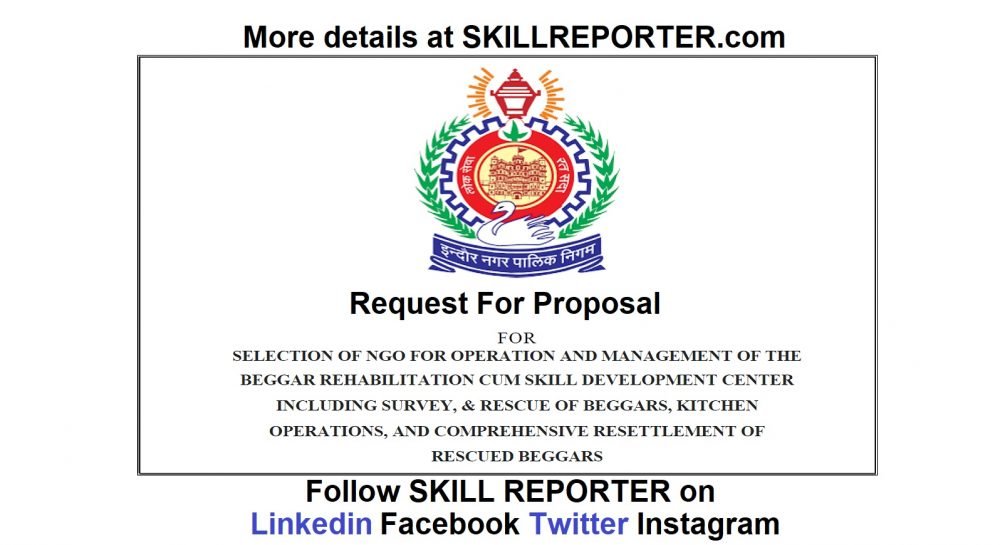 Indore Municipal Corporation as a part of the Initiative has developed a Rehabilitation Cum Skill Development Center cum Shelter Home for the destitute section of the society that are involved in the act of begging. In line with the same Indore Municipal Corporation is inviting bids from registered and reputed NGOs for the Operation and Management of the Beggar Rehabilitation Cum Skill Development Center including survey, & rescue of beggars, kitchen operations, and comprehensive resettlement of rescued beggars.