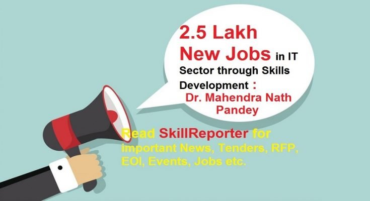 About 2.5 lakh new jobs will be created in IT sector through comprehensive skill development programmes in the coming months, Union Skill Development and Entrepreneurship Minister Mahendra Nath Pandey said on July 2.