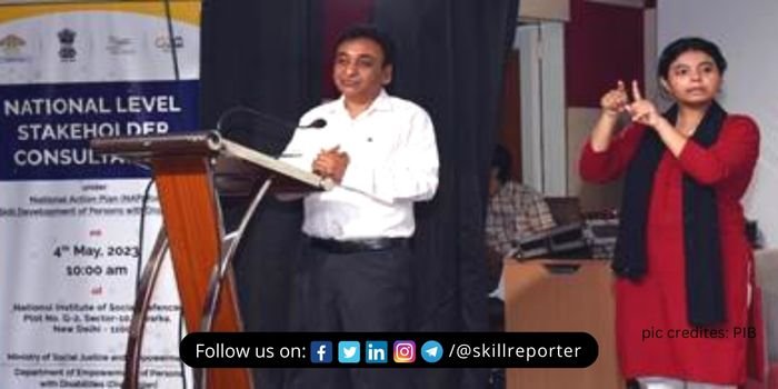 New Delhi: The Department of Empowerment of Persons with Disabilities, Ministry of Social Justice and Empowerment organized a National-Level Stakeholder Consultation under National Action Plan (NAP) for Skill Development of Persons with Disabilities on 4th May 2023 at National Institute of Social Defence, Dwarka, New Delhi. The main objective of the consultation was to get strategic inputs on the NAP scheme from the stakeholders based on their experiences as well as formulate multi-lateral collaborations that can develop sustainable models of skilling and employment of PwDs.