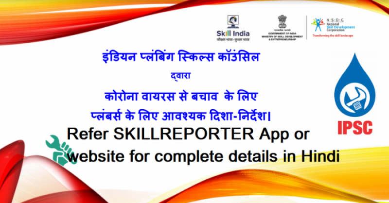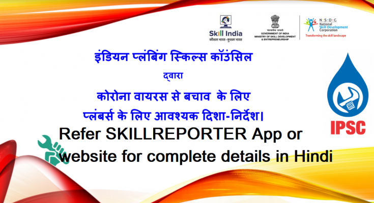 कौशल विकास और उद्यमिता मंत्रालय (MSDE) के तत्वावधान में कौशल विकास कार्यक्रम के तहत इंडियन प्लमबिंग स्किल काउन्सिल (IPSC) ने 900 से अधिक प्लंबर का एक डेटाबेस तैयार किया है जो देश भर में चल रहे COVID 19 संकट की लॉकडाउन अवधि के दौरान अपनी सेवाएं प्रदान करने के लिए तैयार हैं। IPSC ने अपने संबद्ध प्रशिक्षण साझेदारों से अनुरोध किया है कि वे आवश्यक और विस्तारित समर्थन के लिए भोजन और आवश्यक आपूर्ति वितरण गतिविधियों में वितरण ड्राइव का संचालन करें। 70 से अधिक प्रशिक्षण केंद्र भी खाद्य वितरण / अलगाव केंद्रों में रूपांतरण के लिए नामित किए गए हैं।