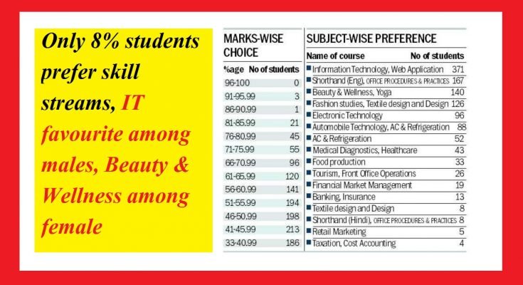 Chandigarh : While the New Education Policy-2019, proposed by the Ministry of Human Resource Development (MHRD), lays emphasis on skill-based education, not many students have given first preference to skill streams while opting for subjects in Class XI.