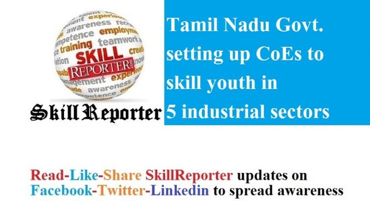 Chennai : The Tamil Nadu government proposes to set up centres of excellence in five core industrial sectors to train unemployed youth with assured placement besides upskilling employed youth in new areas.